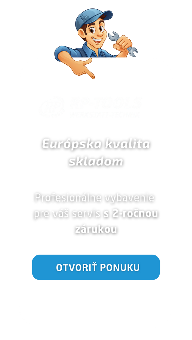 Spoločnosť PREMA working s.r.o. je hlavným distribútorom kvalitného dielenského a servisného vybavenia značky RP TOOLS Austria. Ponúkame produkty vyrobené v Európe (Taliansko, Nemecko) s dôrazom na kvalitu, spoľahlivosť a dlhú životnosť. S nami získate profesionálne poradenstvo, logistickú podporu a 24-mesačnú záruku vrátane záručného a pozáručného servisu.