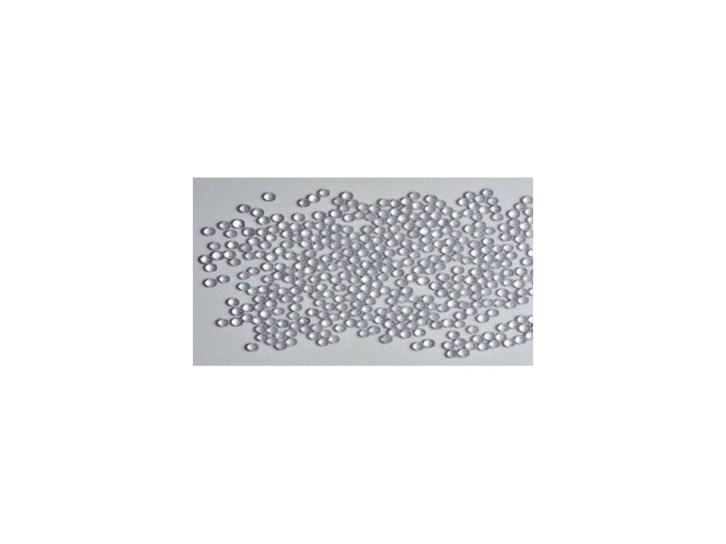 Abrazívny pieskovací materál zložený zo sklenených perál o priemer 200 - 300 mikrometrov