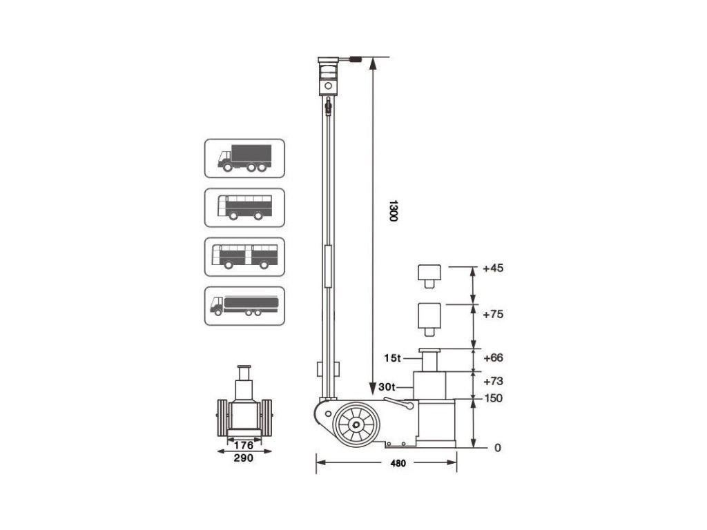 Dvojpiestový pneumaticko - hydraulický zdvihák S30-2EL