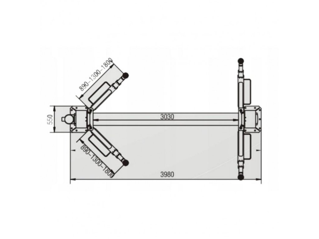3-dielne predné ramená: 890-1800 mm