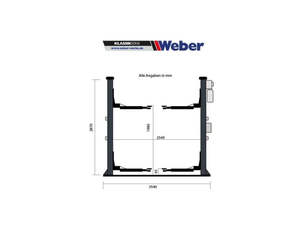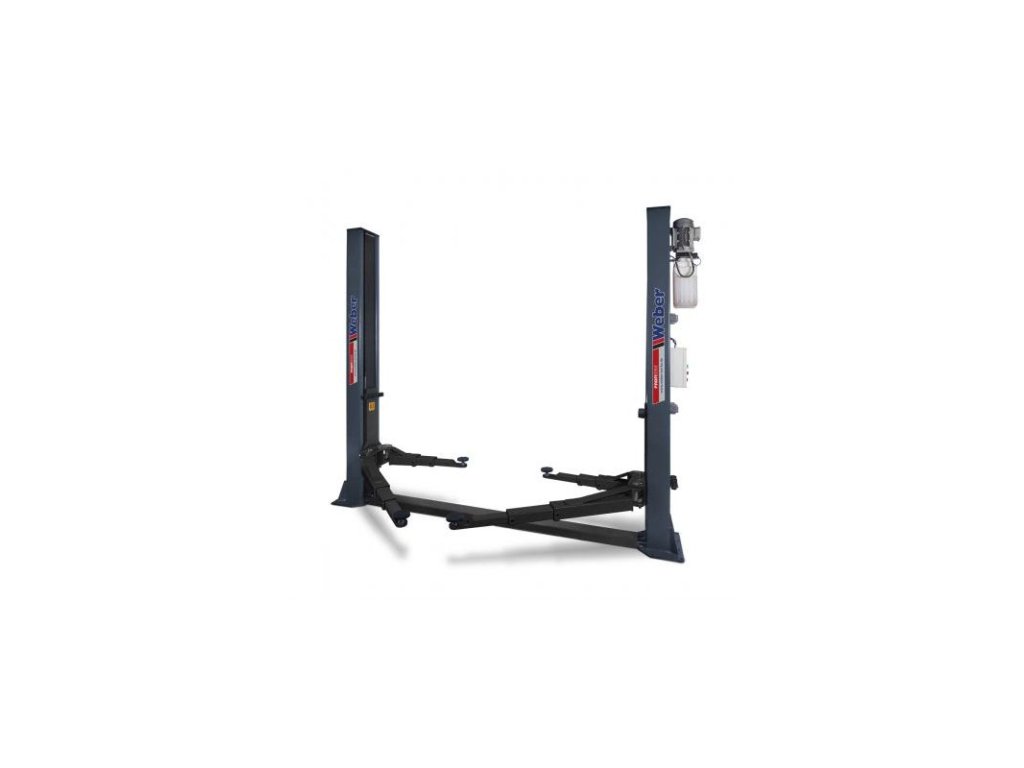 Elektro-hydraulický 2-stĺpový zdvihák s asymetrickými ramenami pre osobné a dodávkové vozidlá a s automatickým odistením západiek.