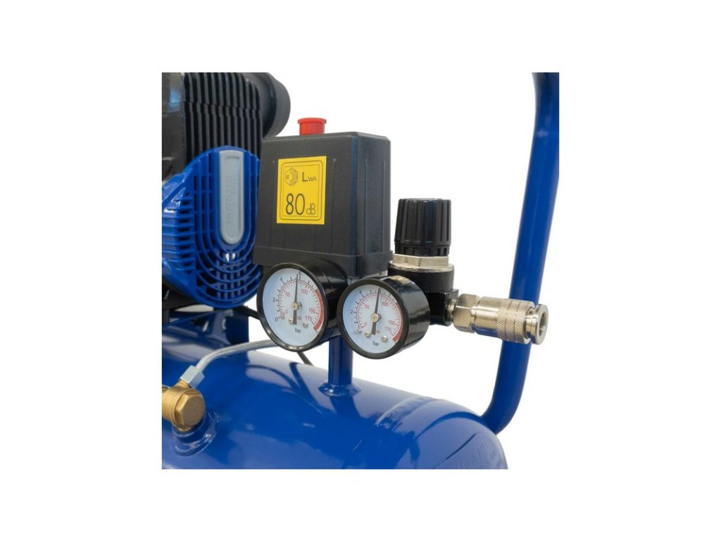Tento tichý kompresor s prevádzkovým tlakom 8 barov a 24 litrovou nádržou je dokonalým riešením pre použitie v obytných oblastiach a prostrediach citlivých na hluk. Vďaka svojej kompaktnej konštrukcii a nízkej hlučnosti je ideálny na hustenie pneumatík a bazénov, ako aj na obsluhu malého pneumatického náradia, ako sú zošívačky stlačeného vzduchu alebo klincovačky. Vďaka pevným kolieskam a praktickej transportnej rukoväti je možné vzduchový kompresor jednoducho presúvať, čo zaisťuje maximálnu flexibilitu pri práci, na montážnych prácach, v kanceláriách alebo bytových domoch. Kotol a pracovný tlakomer umožňujú rýchle a jednoduché odčítanie príslušného tlaku. Mechanický tlakový spínač, redukčný ventil a spojka stlačeného vzduchu zaisťujú rýchle pripojenie zariadení na stlačený vzduch.