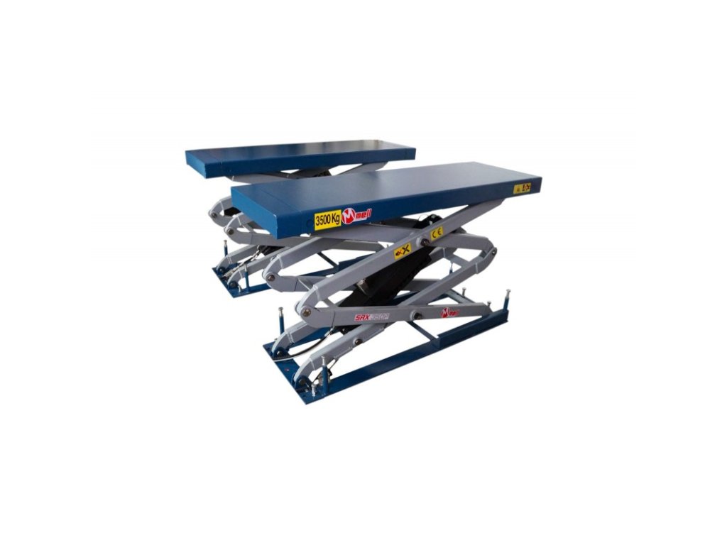 Nožnicový zdvihák do podlahy s výškou zdvihu 2m a nosnosťou 3.5t.