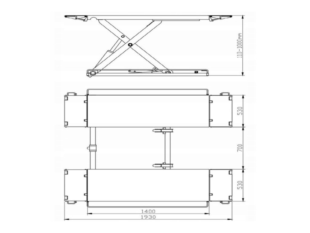 Nožnicový zdvihák s nosnosťou 3.5t a výškou zdvihu 1m