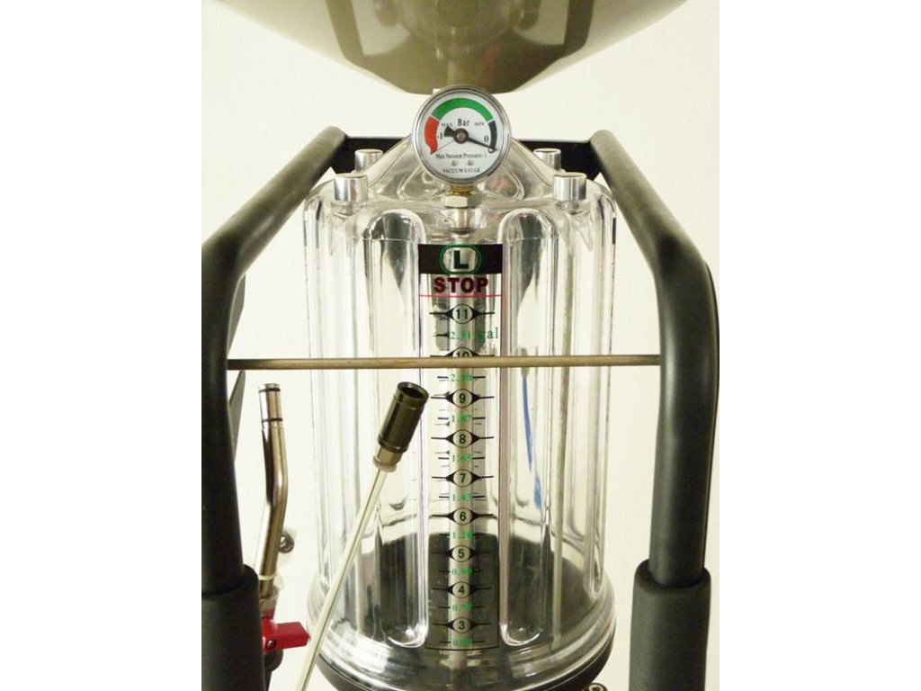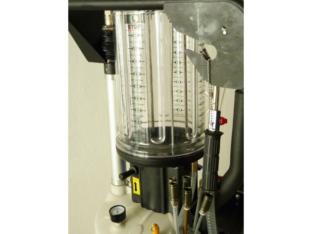 Odmerný valec s objemom 11l so stupnicou pre meranie množstva oleja.