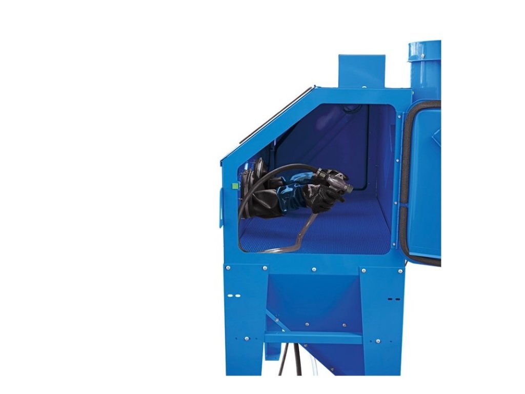 Uzavretá kabína na pieskovanie s automatickým odsávaním vrátane filtračnej vložky robustná a stabilná oceľová konštrukcia