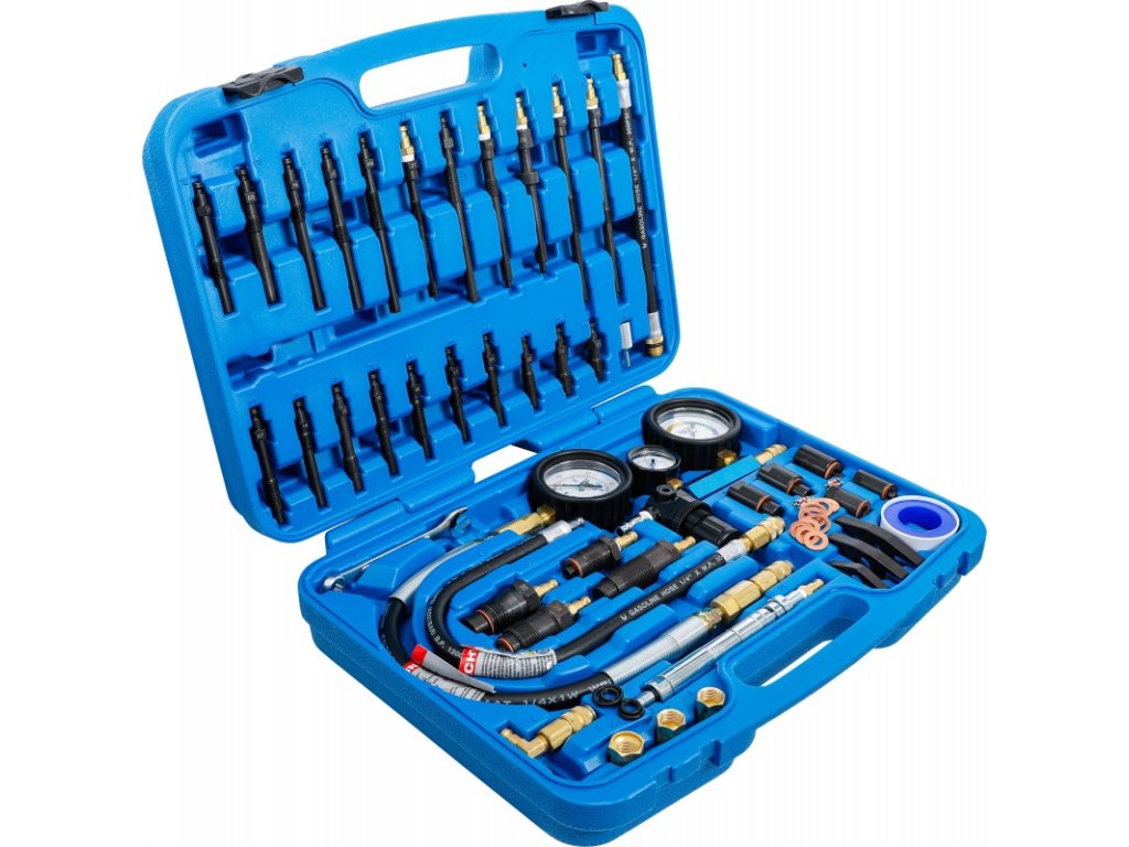 Vhodné pre väčšinu benzínových, ale aj moderných HDi, TDCi, čerpadlo-dýza a starších dieselových motorov Je možné testovať kompresný tlak až do 50 barov (725 PSI). Rýchlospojky v priamom a uhlovom prevedení všetky tlakomery s gumenou ochranouRozsah doručenia: Adaptér do žeraviacej sviečky pre výrobcov: Alfa, BMW, Chrysler, Daewoo, Fiat, Ford, Hyundai, Izusu, Land Rover, Mazda, Mercedes, Mitsubishi, Nissan, Opel, PSA, Renault, Saab, Suzuki, Toyota, VAG, Vauxhall a Volvo Adaptér vstrekovača M20, M22, M24 a pre vstrekovače Ford Stanadyne Adaptéry zapaľovacích sviečok M10, M12, M14 a M18 Vhodné pre väčšinu automobilových, nákladných, autobusových, poľnohospodárskych a lodných motorov prídavný tlakomer na skúšku tlakovej straty