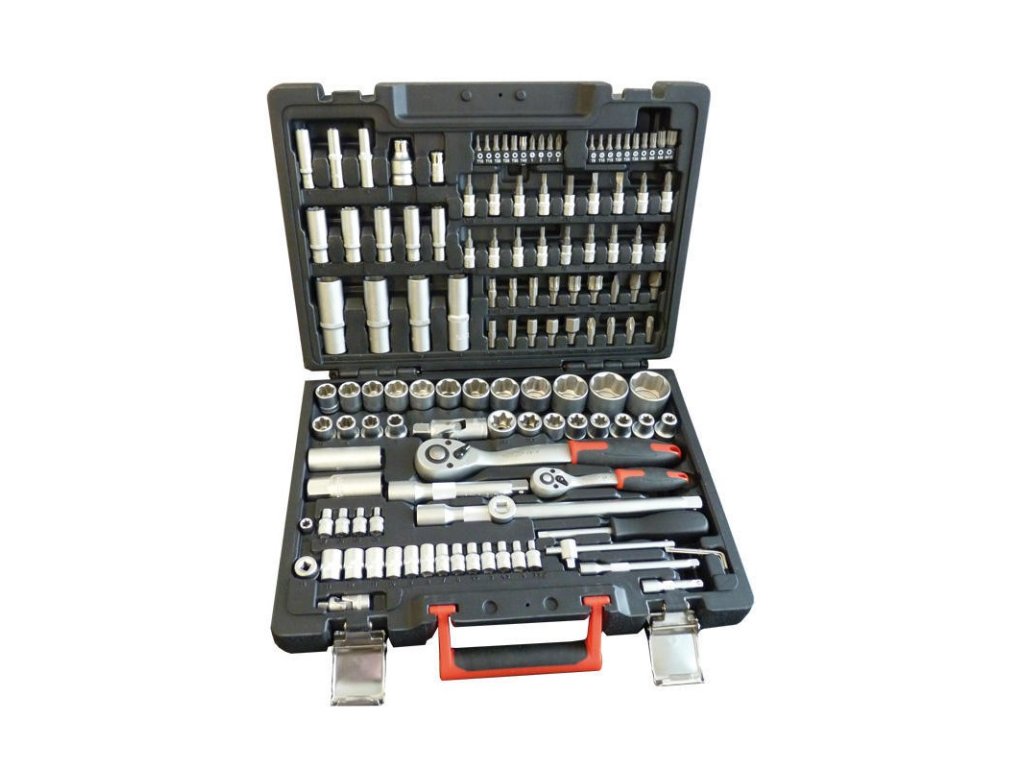 Sada obsahuje 130 ks najpoužívanejšieho dielenského náradia na uťahovanie, povoľovanie skrutiek a matíc s rôznymi hlavicami