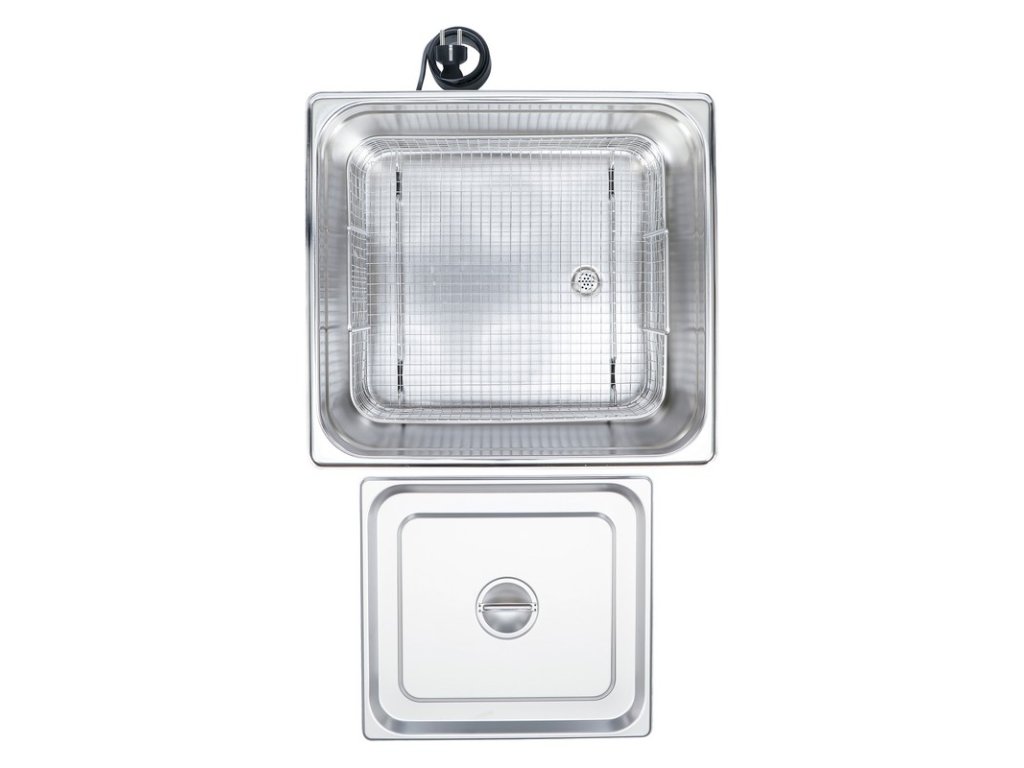 vhodné na čistenie častí motora, nástrojov, šperkov, remienkov na hodinky, elektrických súčiastok, tonerových kaziet, mincí a pod. nerezové puzdro, nádrž, veko a čistiaci kôš veľkosť nádrže: 330 x 300 x 150 mm ultrazvukový výkon: 360 wattov nastavenie času: 0 - 20 min nastavenie teploty: 20 - 80 ° C ultrazvuková frekvencia: 40 KHz |