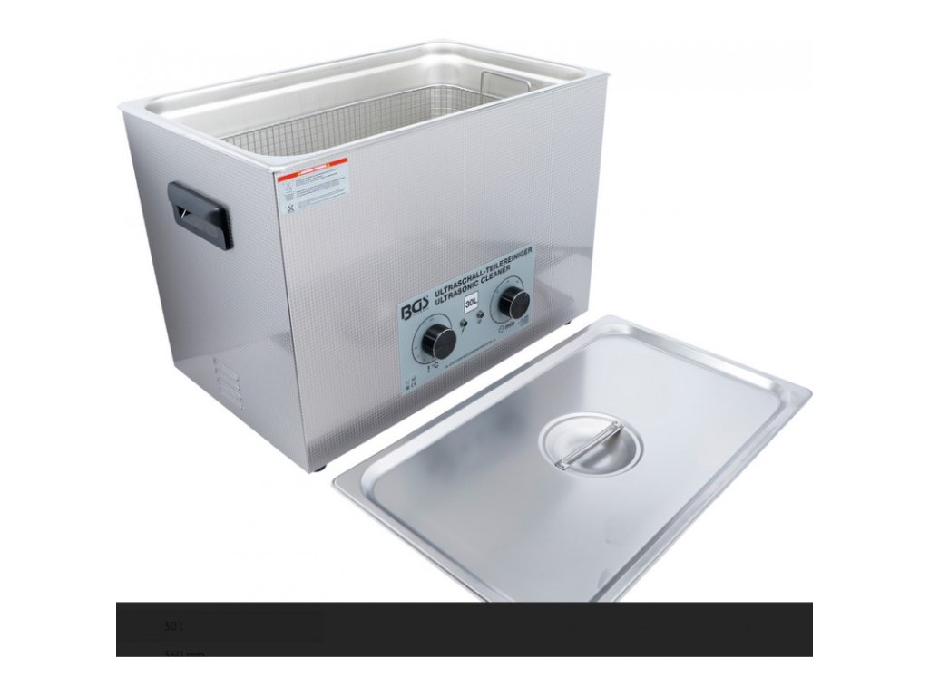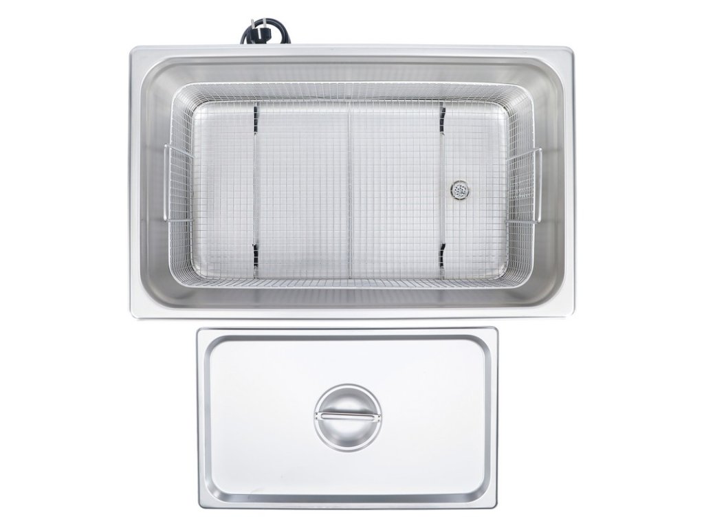 vhodný na čistenie častí motora, náradia, šperkov, remienkov hodiniek, elektrických komponentov, tonerových kaziet, mincí atď. nerezové puzdro, nádrž, veko a čistiaci kôš rozmer nádrže: 500 x 300 x 200 mm výkon ultrazvuku: 600 wattov nastavenie času: 0 - 20 min nastavenie teploty: 20 - 80 °C ultrazvuková frekvencia: 40 kHz