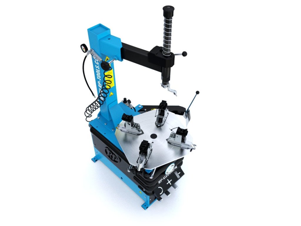 Vyzúvačka pneumatík s manuálnym otáčaním bočného ramena. Zariadenie určené pre motocykle. Jeho súčasťou je výkyvné montážne rameno, montážna hlava, veľký odtlačný valec. Precízne vyhotovenie stroja. Súčasťou dodávky je pneuhustič s manometrom, montážna páka, sada plastových ochranných krytov na upínacie svorky. Súčasťou zariadenia nie je elektrická koncová zásuvka! Cena uvedená bez montáže a dopravy.