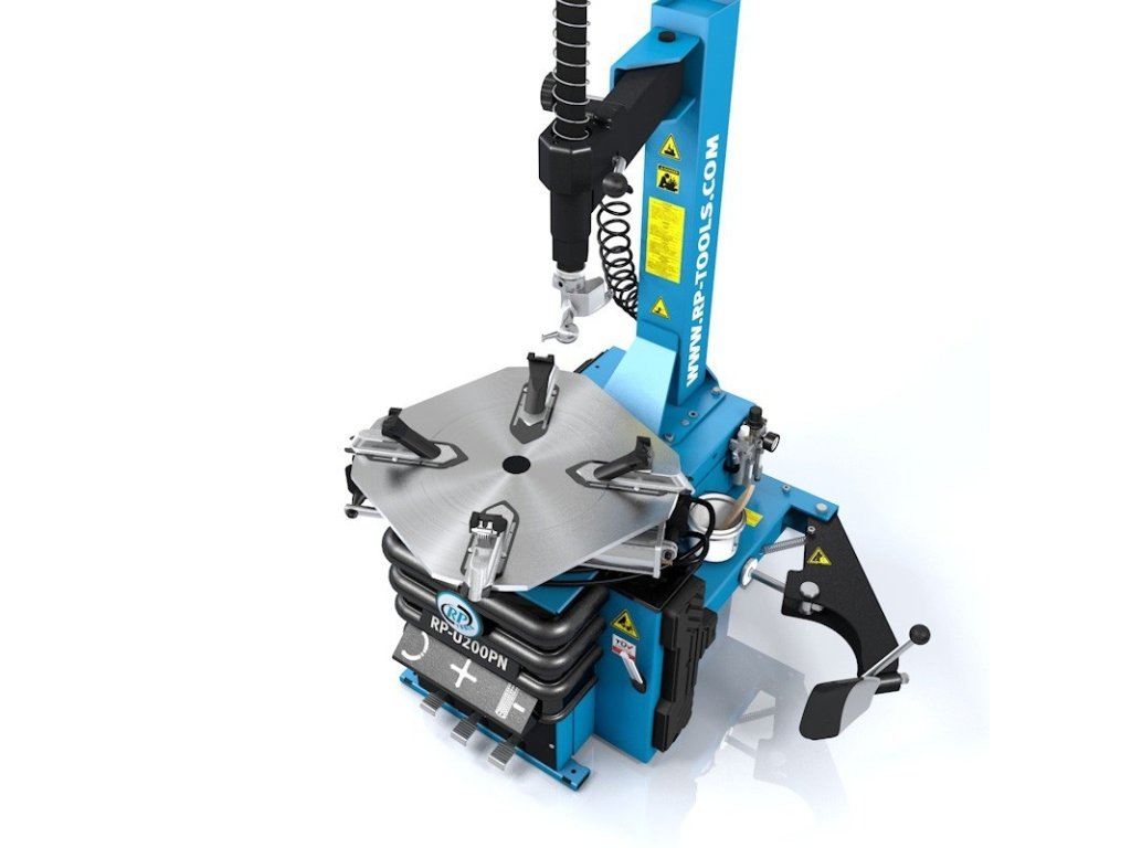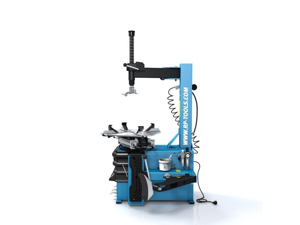 Zariadenie určené na montáž a demontáž pneumatík osobných áut, ľahkých a úžitkových vozidiel. Zariadenie je určené na bežné použitie. Jeho súčasťou je výkyvné montážne rameno, montážna hlava, veľký odtlačný valec, poloautomatický nastaviteľný montážny tanier. Precízne vyhotovenie stroja. Súčasťou dodávky je pneuhustič s manometrom, montážna páka, sada plastových ochranných krytov na upínacie svorky. Súčasťou zariadenie nie je elektrická koncová zásuvka. Cena uvedená bez dopravy a montáže.