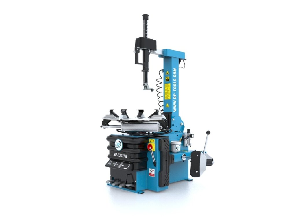 Profesionálna dvojrýchlostná vyzúvačka pneumatík RP U221PN . Jej výhoda je pneumatické odklopné rameno s montážnou hlavou ,ktorá zaručuje šetrné vyzúvanie a obúvanie pneumatík do rozmerov až 24" !
